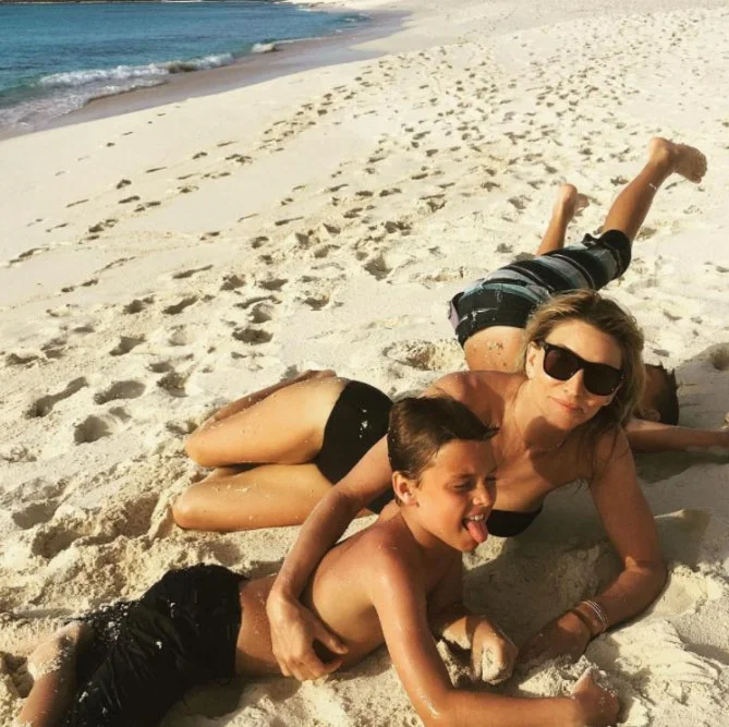 The Real Housewives of Beverly Hills star and her model daughter, Delilah, strike a pose on the beach while visiting Palmilla resort in Los Cabos, Mexico.