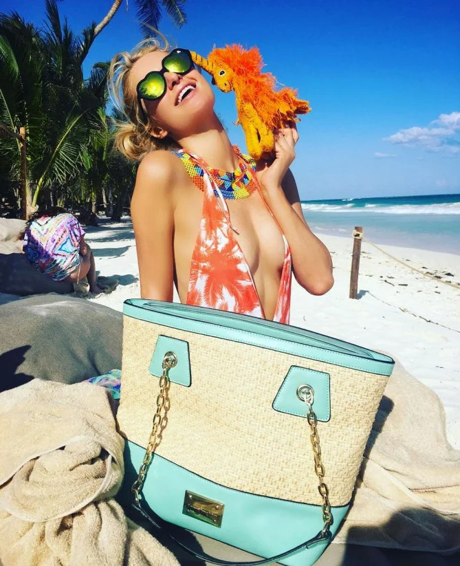 Paris Hilton sets up camp on the sand at Mexico's Be Tulum hotel.